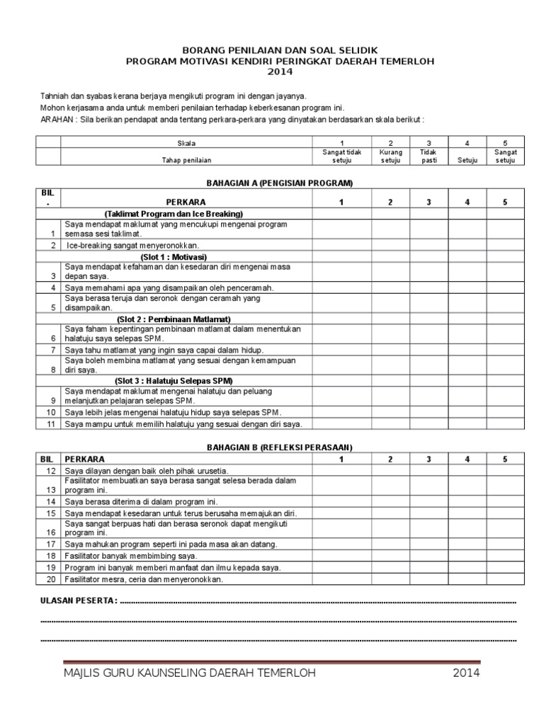 Borang Penilaian Dan Soal Selidik Prog Kendiri Pdf