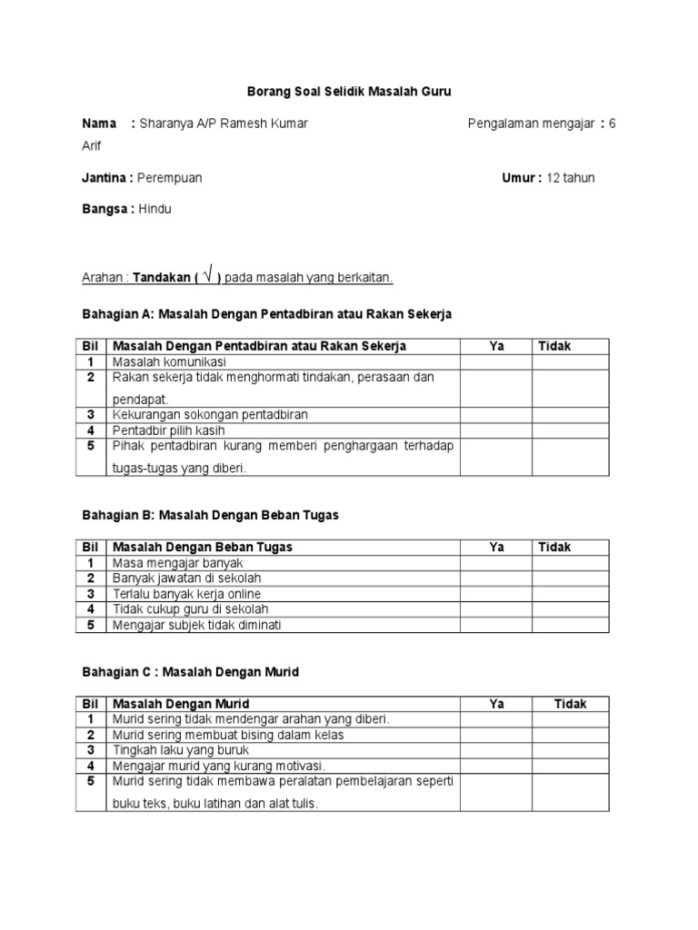 Borang Soal Selidik Masalah Guru Pdf